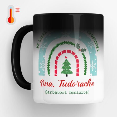 Efect wow: neagră când e rece, cu fotografii când e fierbinte. Cana termosensibilă este un cadou deosebit pentru orice destinatar.