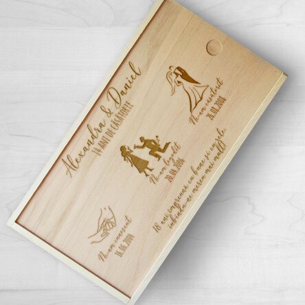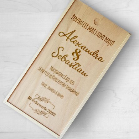Pentru un vin oferit cadou, alege o cutie de lemn gravată cu cele mai deosebite mesaje gravate.