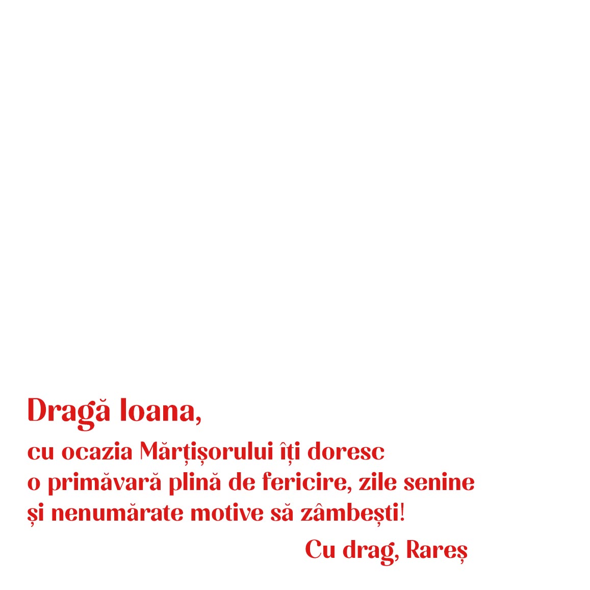 Изненадайте близките си с персонализирана картичка, специално създадена, за да предаде красиви мисли и искрени пролетни пожелания. Какво мога да персонализирам? Картичката може да бъде персонализирана с текст Как мога да я персонализирам? Стъпка 1: Кликнете върху бутона „Персонализирай“ Стъпка 2: Попълнете текстовите полета с желаното съобщение, след което кликнете върху бутона „Потвърди“ Стъпка 3: Кликнете върху бутона „Завърши“ и добавете продукта в кошницата си. Формат – приблизително 9,8 x 9,8 cm Материал: хартия 250 gsm Размер на включения плик: 13 x 13 cm
