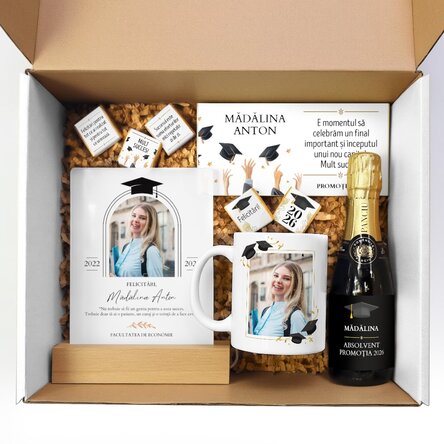 Идеален за подаряване на церемонията по завършването или като специална изненада, този комплект придава допълнителна емоция на един и без това незабравим момент.